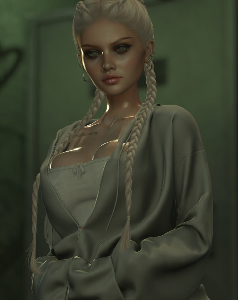 I took the time to stage a photoshoot within Second Life. Adjusting the lighting and environmental factors to fit in with how I wanted the overall look and feel of the final image.